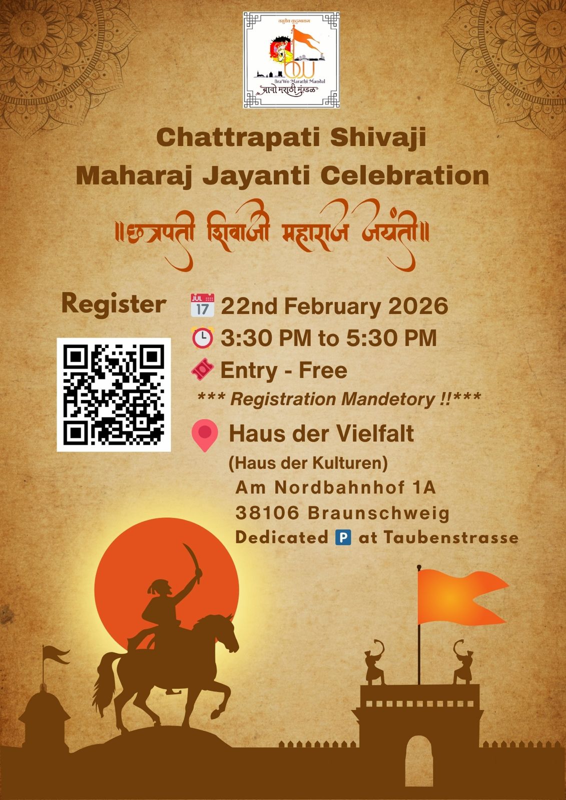 BraWo Marathi Mandal e.V. is pleased to announce our Shiv Jayanti Celebration on 22nd February 2026. 📅 Date: 22nd February 2026 ⏰ Time: 3:30 PM to 5:30 PM 🎟 Entry:…Read More