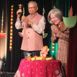 Doors were opened at around 16:00 hrs. The program started with a short welcome in the reception area with traditional Diwali delicacies (Faral) at 16:30 hrs reminding everyone of the celebrations back in India. For this program desipass.com was our ticketing partner. At 16:45h the program began with formal Vidyut Deep Prajwalan by Dr. Amritlal Sawal & Mrs. Karin Sawla followed by the moderated cultural