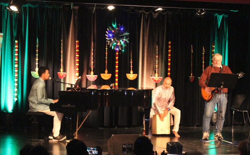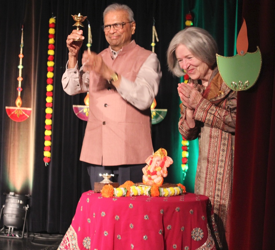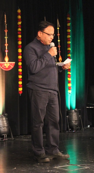 Doors were opened at around 16:00 hrs. The program started with a short welcome in the reception area with traditional Diwali delicacies (Faral) at 16:30 hrs reminding everyone of the celebrations back in India. For this program desipass.com was our ticketing partner. At 16:45h the program began with formal Vidyut Deep Prajwalan by Dr. Amritlal Sawal & Mrs. Karin Sawla followed by the moderated cultural